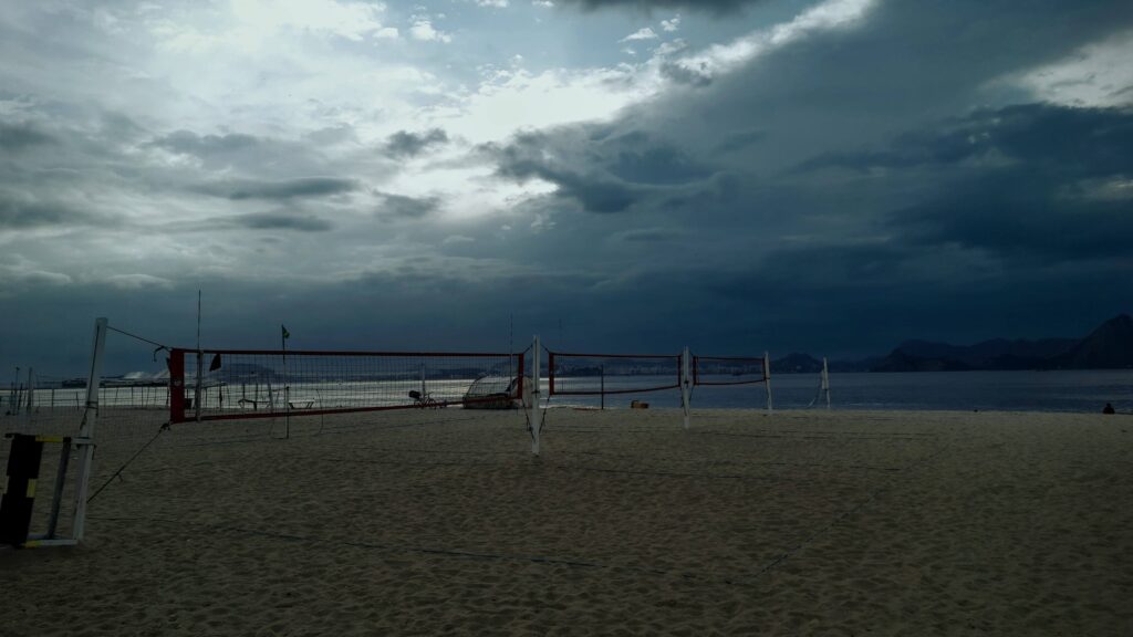 Copacabana, Rio de Janeiro: 25oC, warmish, sunny and slightly overcast.