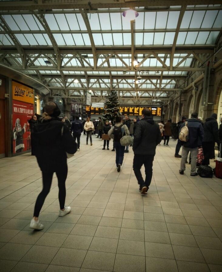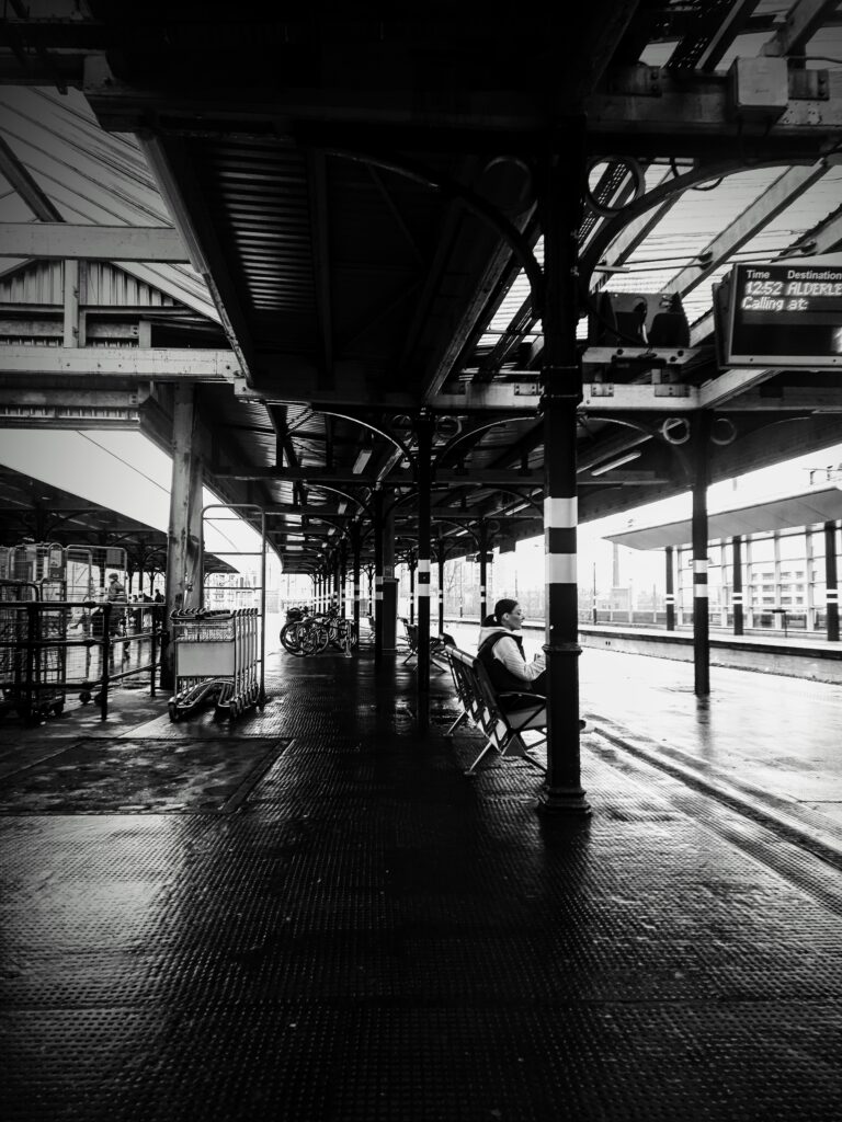 I had eight minutes to change platforms and trains in Derby, and my train had arrived two minutes late. I was the first off and onto the platform, and up the steps onto the steel passageway that connects all the other platforms. I had arrived on platform six but needed to go to platform three. In the blur of the rush, I saw platform three on the monitor for Birmingham New Street station. I went down the steps, and the train was already there, with people already boarding.
