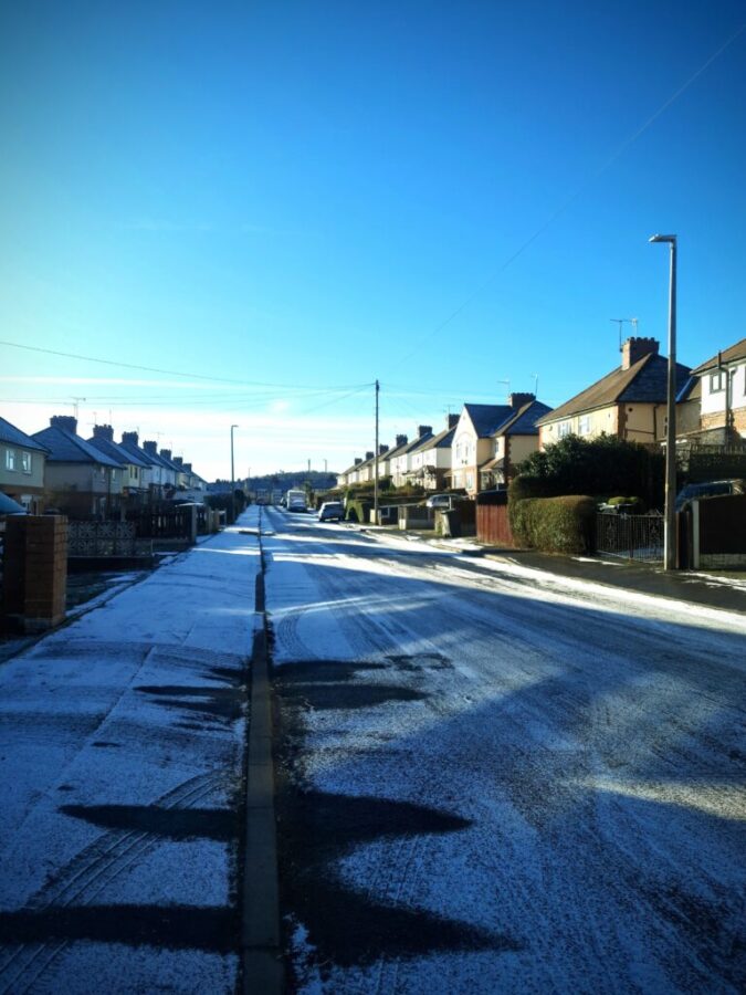 Wordsley, Stourbridge, England: 1 degree, bitterly cold but with beautiful blue skies.