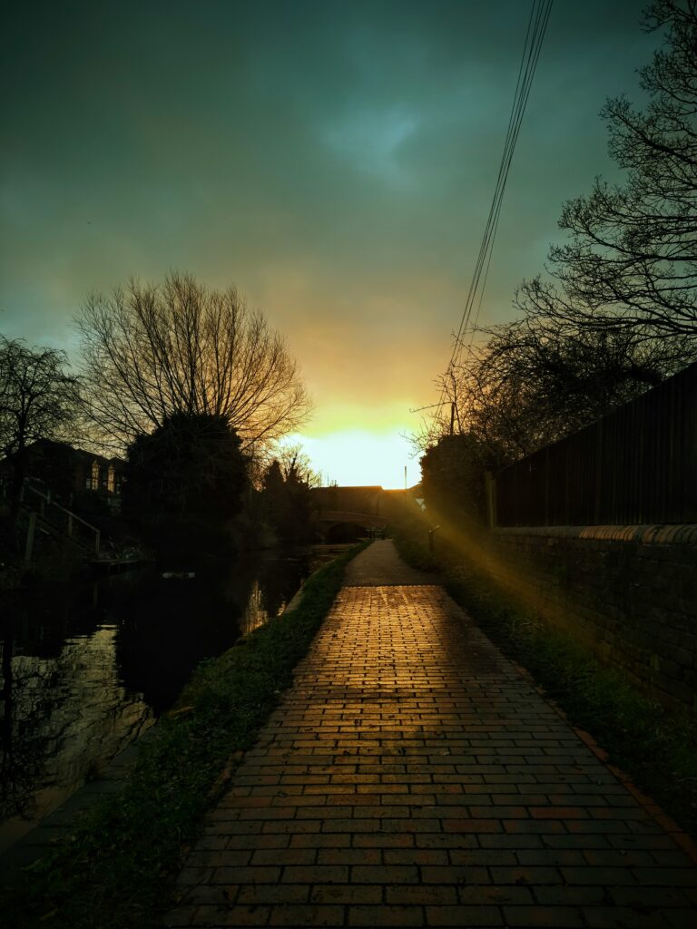 As I left home, it began to drizzle slightly. I decided to give up and go to the local precinct, the square on the green. As I was returning, the rain had stopped, so I decided to walk to the supermarket, using Google Maps for directions. My route took me along the canal and through some fields. After about three miles and almost an hour of walking, I finally arrived at the supermarket.