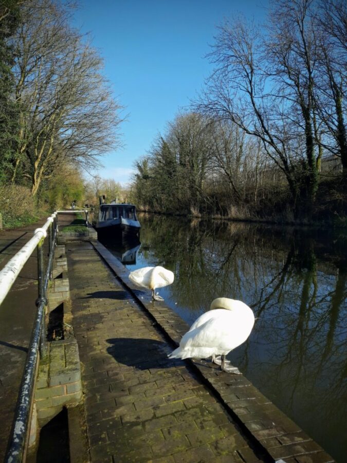 I went to the canal, it’s about a 10-minute walk from my mother’s house, and it was as if the swans were waiting for me. A couple of swans that I have fed many times along the stretch of the canal have recently been staying inside the basin, the nearest part of the canal to the park and where my mother lives.