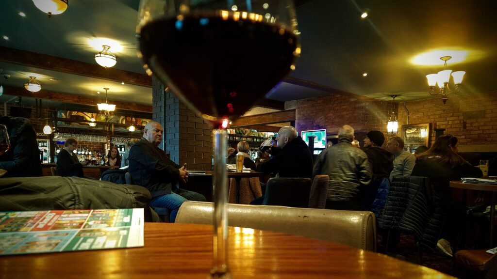 She was strange, constantly trying to test me, but I was OK. We arranged for 7:00 p.m. I walked there, and everything was good. I arrived early at Wetherspoons, and to my surprise, it wasn’t that full. I managed to find a secluded booth where we could eat without being overheard by anyone nearby. These booths with their very high backrests are a little exaggerated, but still good. A waiter came over; I told him I was waiting for someone, and everything was fine.