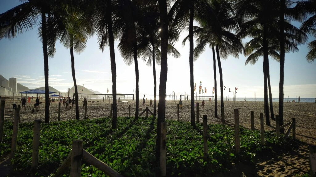 Copacabana, Rio de Janeiro: 30 °C, hot, sunny and slightly overcast.