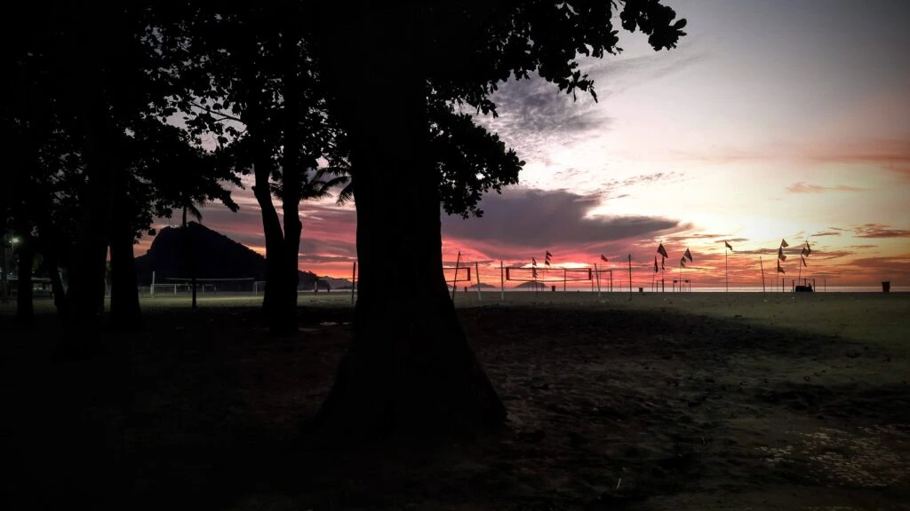 Copacabana, Rio de Janeiro: 29 °C, hot, sunny, and slightly overcast.
