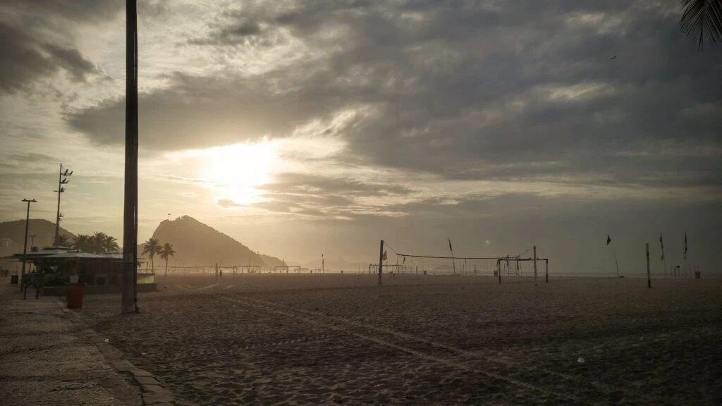 Copacabana, Rio de Janeiro: 29 °C, hot, sunny and slightly overcast.