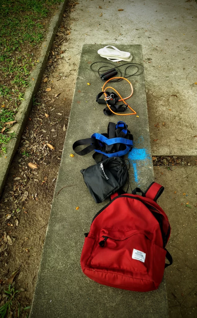 Yasmin and I got up early and went to the Portuguese baker’s for breakfast. After a walk around for mango and along the beach, we ended up at the park for a generic workout. Obviously, I am no personal trainer. My son-in-law is, but I know. However, I showed you the name of the series I usually do when I’m at the park.