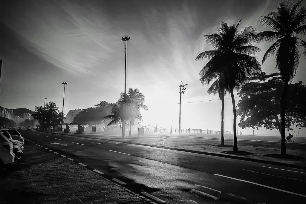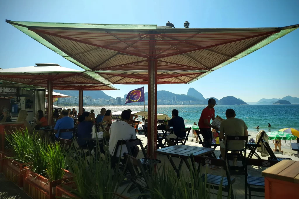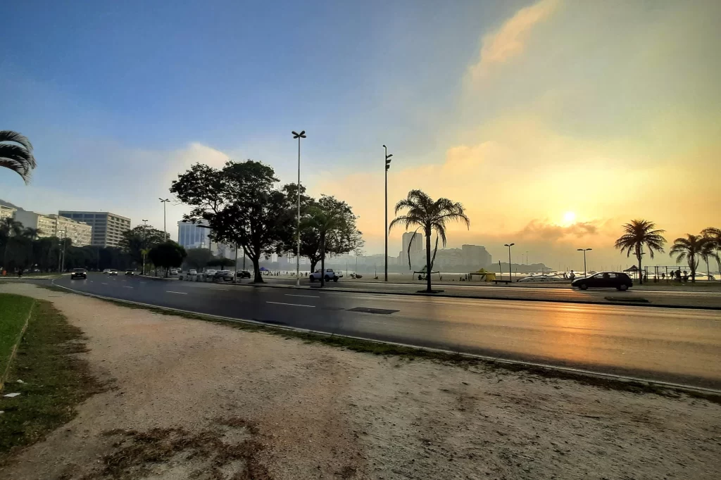 Copacabana, Rio de Janeiro: 32°C, hot, sunny, stuffy, and slightly overcast.