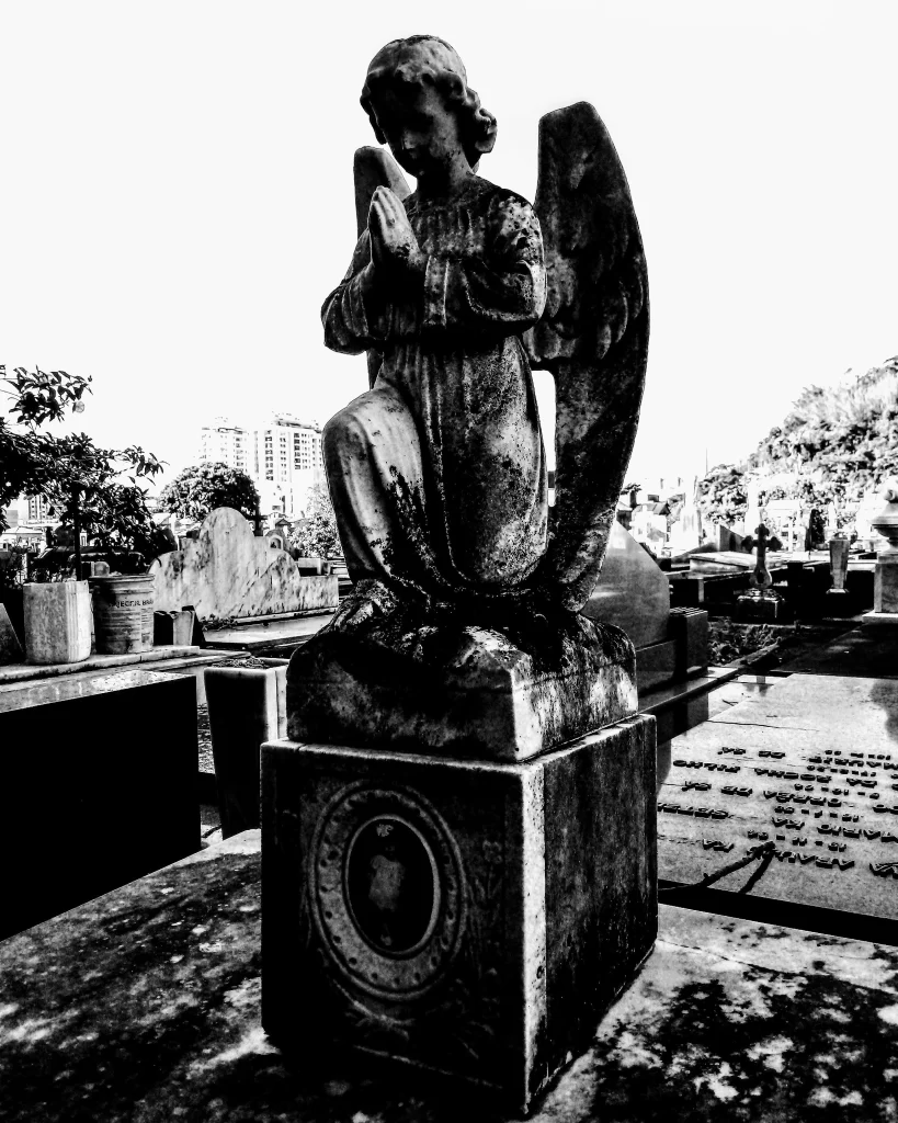 During my last visit to the cemetery, I spent over an hour walking around, taking pictures of the various strange and beautiful graves and tombs.I found it interesting to see how families in the past would spend a fortune building a grave in the form of a sanctuary with sculptures and everything for a deceased loved one. It is as if they believed the tomb would guarantee a better afterlife for their loved ones.