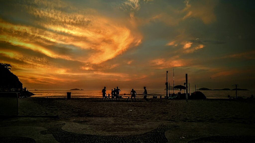 Copacabana, Rio de Janeiro: 28 °C, hot and a little overcast.